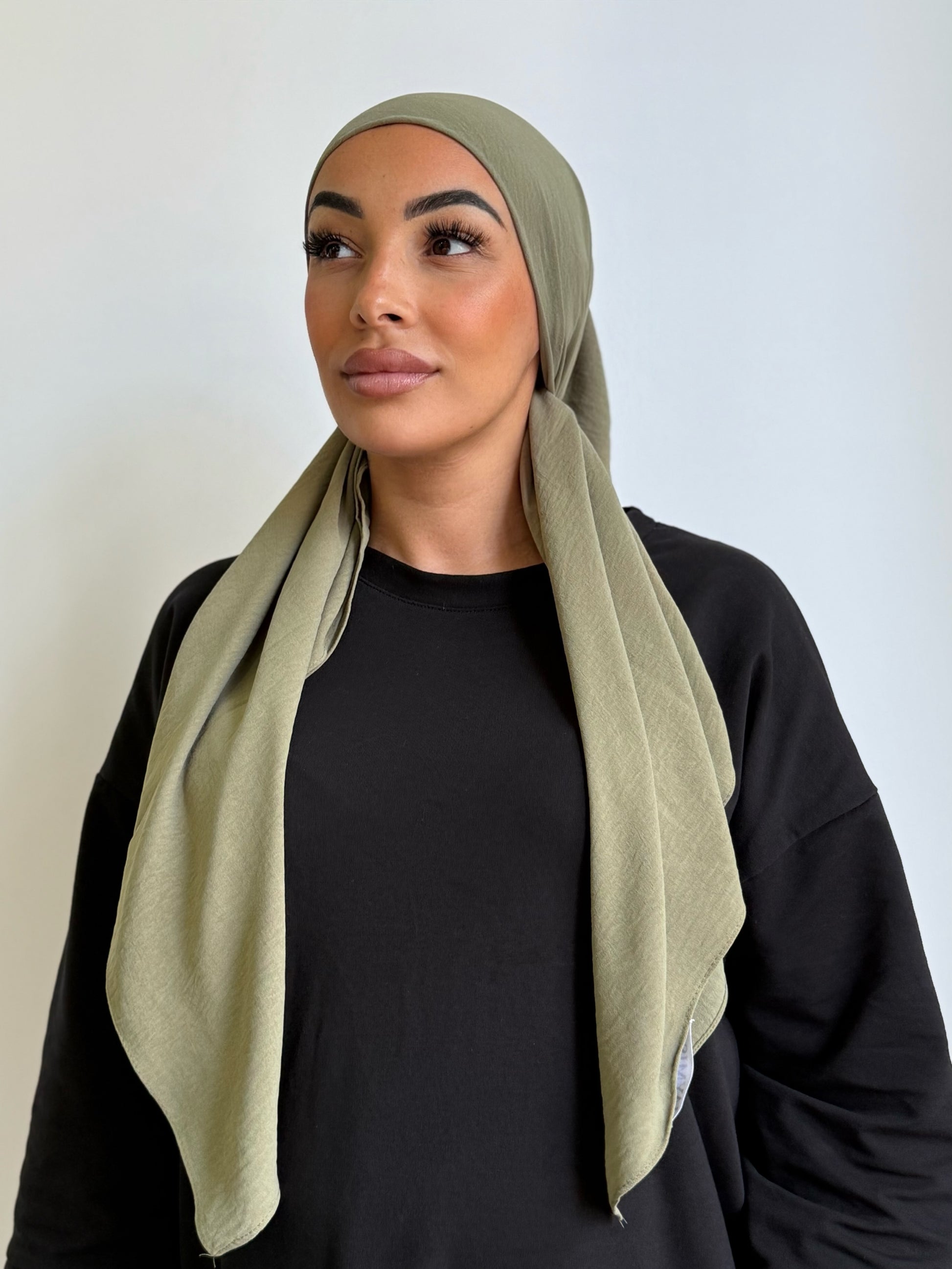 Light and subtle khaki green : A natural color, easy to combine and which delicately enhances all skin tones.